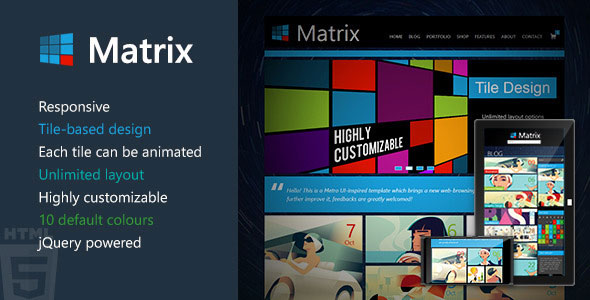 演示地址 英文版免费下载 最新汉化版 Matrix是一个负责任的,直观的基于瓦片的模板,它是由地铁设计灵感。瓷…