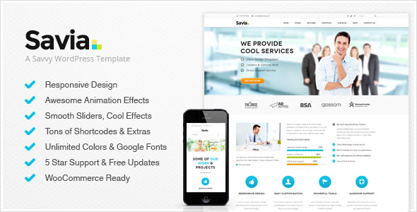 演示地址 英文版免费下载 最新汉化版 萨维亚 – 高级WordPress的模板是一个高级响应,HTML5 / …