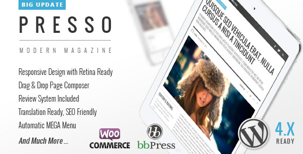 演示地址 英文版免费下载 最新汉化版 PRESSO是专为博客,报纸,社论,杂志或个人网站的清洁的现代杂志Wor…