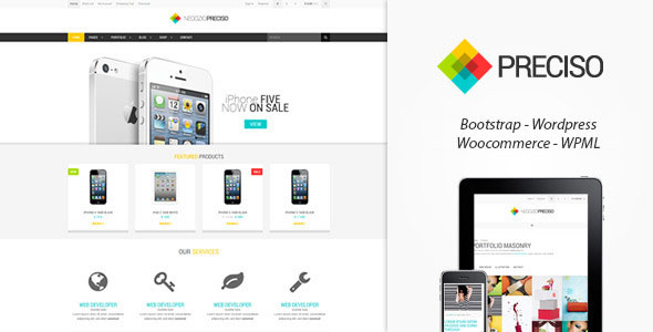 演示地址 英文版免费下载 最新汉化版 Preciso店铺门面是一个非常现代,干净和丰富多彩的WordPress…