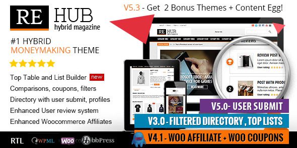 REHub – 增强的子公司,优惠券,目录功能混合的wordpress模板+ ECWID + WOOCOMMERCE EXTENDED +多厂商和用户提交+ EasyDigitalDownload +的bbPress +内容+蛋联盟链接建设者支持