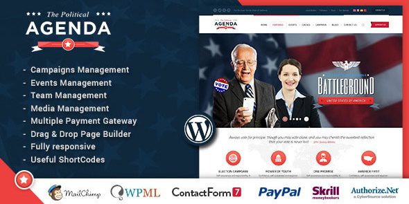 议程政治WordPress主题是优雅的,可定制的,简单,清晰的WordPress主题。议程的主题提供了令人惊叹的功能来创建广告活动,团队活动和媒体,还有更多为您服务。主题是为政治竞选管理,每一个可能的选项完全兼容。议程WordPress主题是一个实际系统,您可以创造无限的竞选为任何目的。活动安排,描述,目标金额与运动成员和其他可能的功能的运动。这是最简单的主题,设置观感根据您的选择。令人惊讶的功能是建立在搜索引擎优化的兼容性这与最新的搜索引擎优化技术完全兼容。一些政治主题的主要特点包括:可自定义的背景和颜色选择,字体图标,短码,多和无限的侧边栏,无限的视频功能与默认介质后等等。另一个惊人的特点是这个主题是流行的支付网关,如贝宝,的Skrill,authorize.net。此外,它可以被翻译成您所选择的通过WPML插件的任何语言。