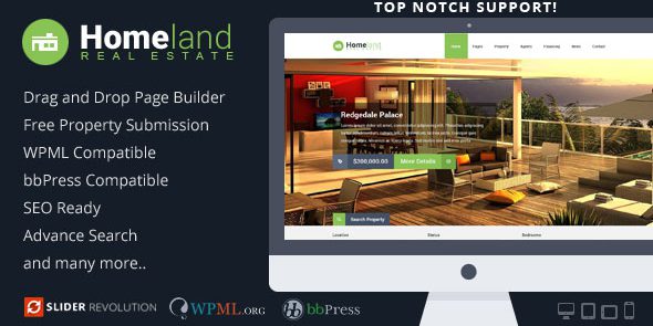 一个非常好看的和用户友好的设计,塑造专业形象,您的访客和潜在的客户。这是房地产经纪人一个伟大的方式来构建房源的网上组合。它包含了许多功能,这使得它非常容易,不仅增加房源信息到您的网站,还组织和分类。