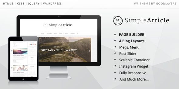 简单的文章是最小的WordPress主题设计的博客。它提供了许多功能,博客一定会喜欢它。置顶帖子,每个帖子的社会共享,许多岗位格式,如视频,音频,Soundcloud(音),画廊作为网格或滑块或列,报价,除了…我们还提供4个博客布局最大限度地提高您的设计,包括完整的缩略图,中缩略图与侧面,柱和砌体的内容…我们还提供类别过滤器在这个主题的博客文章也。尽情享受吧! 🙂