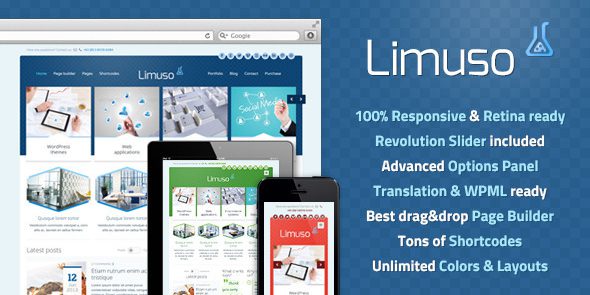 Limuso是伟大的和易于使用的主题,为大家。内置的内容生成器,选项面板与选项吨,80 +简码和物品或内置转换是什么,我们想现在只是很小的一部分。现在,你不`吨需要是编码器,以使自己的网站 – 只需购买这一主题,并与我们的真棒视频教程,文档和支持论坛,你可以建立任何你想要的网站。