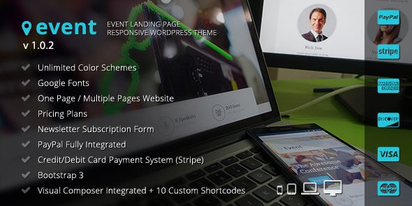 事件是一种简单,现代,反应灵敏的WordPress登陆主题,是完全适用于任何活动,会议,音乐会和展览。它是基于引导3框架,这意味着它会很好看的任何屏幕尺寸为。