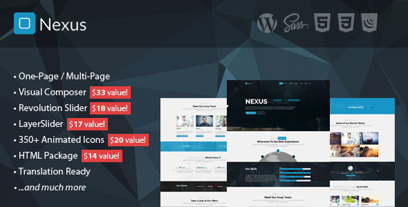 演示地址 英文版免费下载 最新汉化版 Nexus是一个溢价WordPress主题,适合于每一个企业,每一个方式…